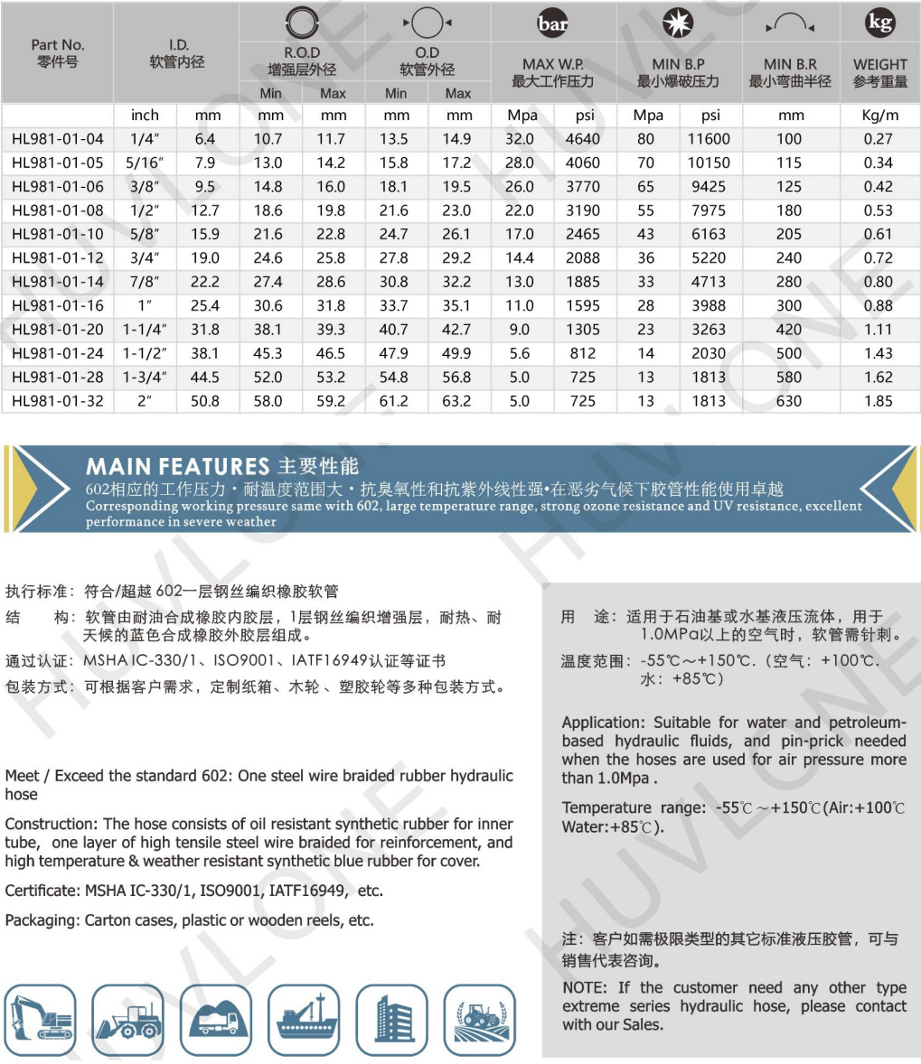 產(chǎn)品用途:適用于石油基或水基液壓流體,用于1.0MPa以上的空氣時(shí),軟管需針刺。