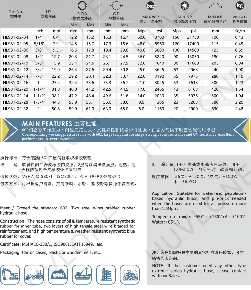 產品用途:適用于石油基或水基液壓流體,用于1.0MPa以上的空氣時,軟管需針刺。