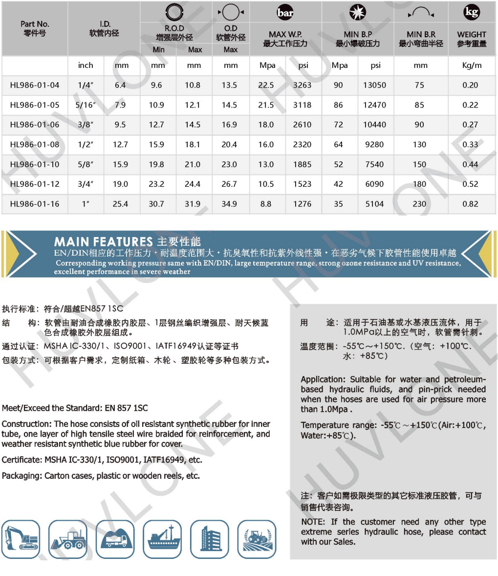 產(chǎn)品用途:適用于石油基或水基液壓流體,用于1.0MPa以上的空氣時(shí),軟管需針刺。