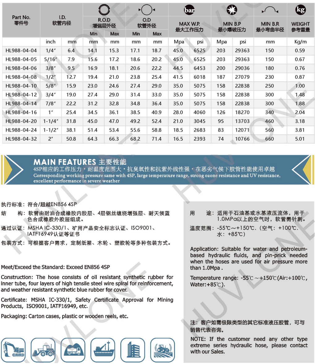 符合/超越DIN EN8564SP四層鋼絲纏繞耐高低溫橡膠軟管