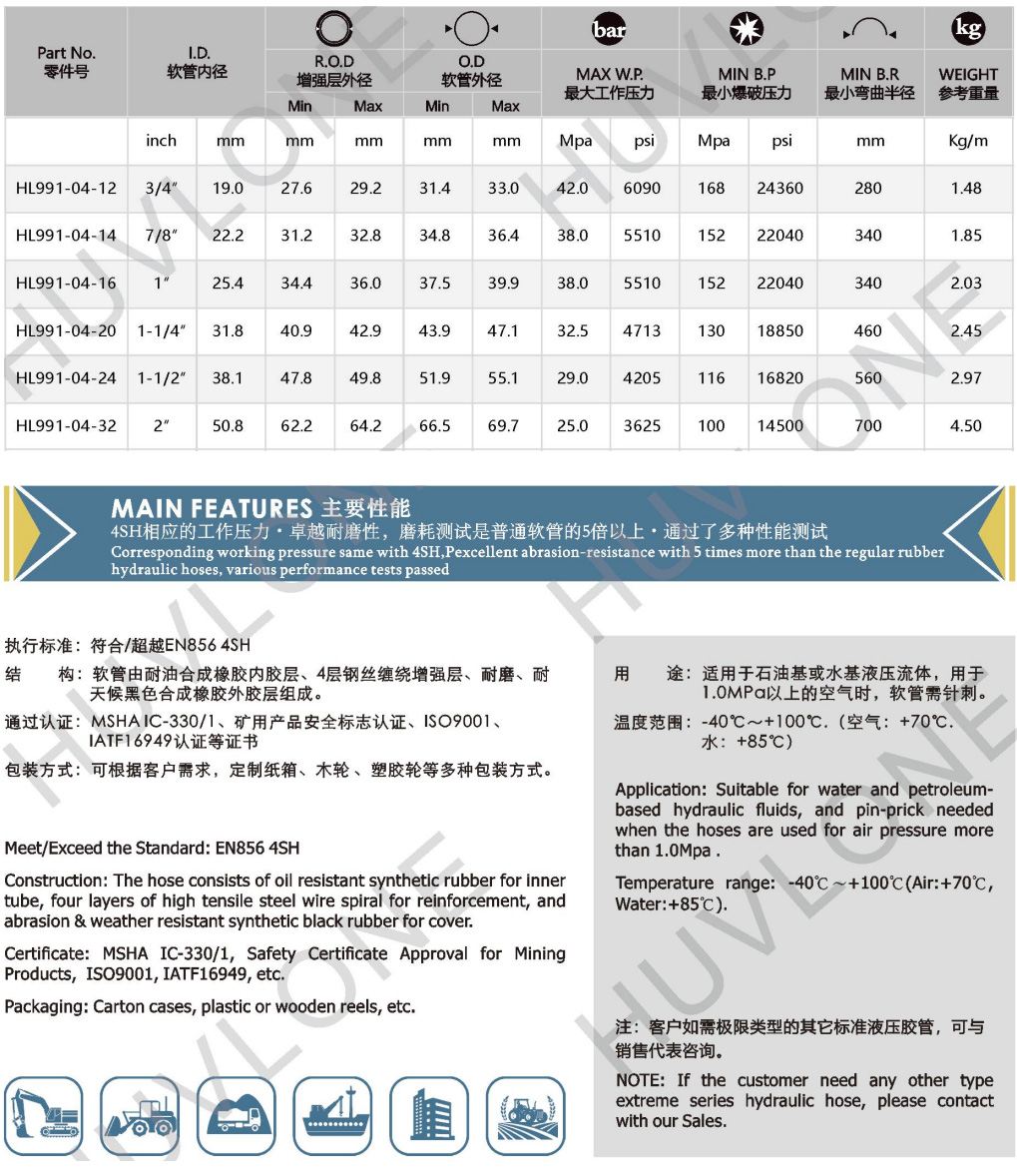 符合/超越DIN EN8564SH四層鋼絲纏繞耐磨橡膠軟管