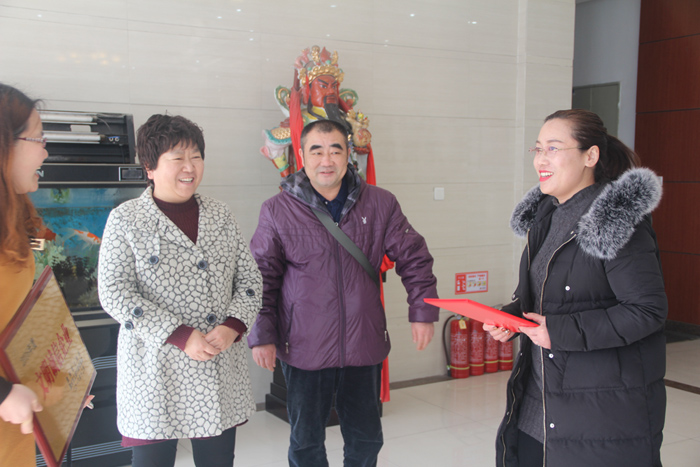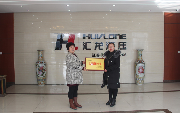 2017年2月24日上午10點,漯河市工商局辦公室張主任、漯河經(jīng)濟開發(fā)區(qū)工商分局于局長及漯河經(jīng)濟開發(fā)區(qū)后謝鎮(zhèn)工商所劉所長一行來到公司,對匯龍液壓獲得“2016年度文明誠信企業(yè)”進行授牌及表彰,公司總經(jīng)理趙會芳代表公司接受榮譽并合影留念。