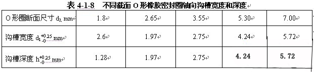 因?yàn)镺形橡膠密封圈是安裝在各種溝槽中使用,現(xiàn)將安裝溝槽情況列于表4-1-3。
