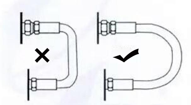 正確安裝膠管至關(guān)重要,如果膠管過(guò)長(zhǎng)不但影響外觀,而且增加成本。如果膠管太短,當(dāng)其受壓而伸展或收縮時(shí),沒(méi)有足夠的伸縮余地,會(huì)導(dǎo)致膠管被破壞。以下各圖顯示安裝膠管時(shí)應(yīng)注意的事項(xiàng),依此安裝可達(dá)最佳的工作效果并延長(zhǎng)膠管的壽命。