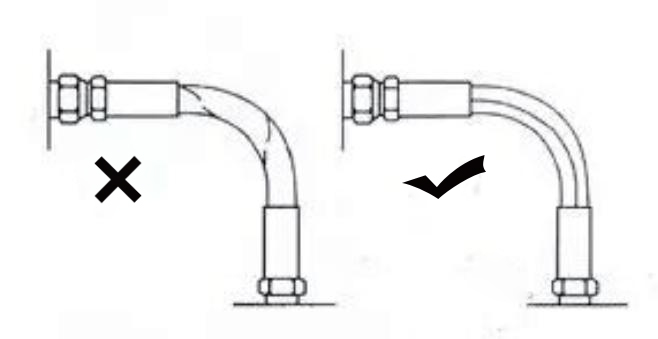 安裝膠管總成時(shí)應(yīng)注意到膠管的最小彎曲半徑,若彎曲半徑過(guò)小,將降低膠管的承壓能力并影響其使用壽命。