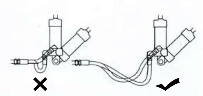 安裝膠管時(shí),切勿讓其扭歪,否則當(dāng)受壓力時(shí)會(huì)破壞膠管或令其連接處松脫。