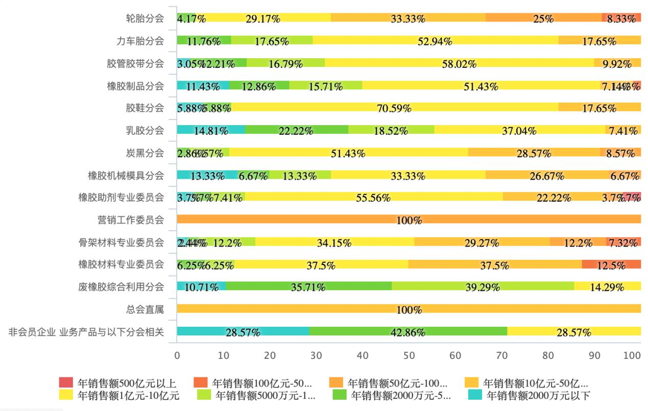 參與填報(bào)的企業(yè)中,年銷售額在 100 億-500 億人民幣區(qū)間的企業(yè)有 9 家,企業(yè)所屬四個(gè)分會(huì),分別為:輪胎分會(huì)有 2 家(中策、賽輪);骨架材料專委會(huì)有 3 家,(神馬實(shí)業(yè)、盛禧奧、瑞士遠(yuǎn)東);橡膠材料專委會(huì) 2 家(云南天膠、江蘇上上電纜集團(tuán)),橡膠制品分會(huì)有 2 家(安徽中鼎、株洲時(shí)代新材)。目前這些企業(yè)多數(shù)已經(jīng)復(fù)工,但產(chǎn)能恢復(fù)沒(méi)有達(dá)到去年同期水平,其中在國(guó)外有建廠或跨國(guó)企業(yè)的此次疫情中抗風(fēng)險(xiǎn)能力強(qiáng)一些,但國(guó)內(nèi)銷售情況受物流、原材料、員工等因素影響,受影響較大。年銷售額 500 億人民幣以上的只有一家企業(yè)填報(bào)。
