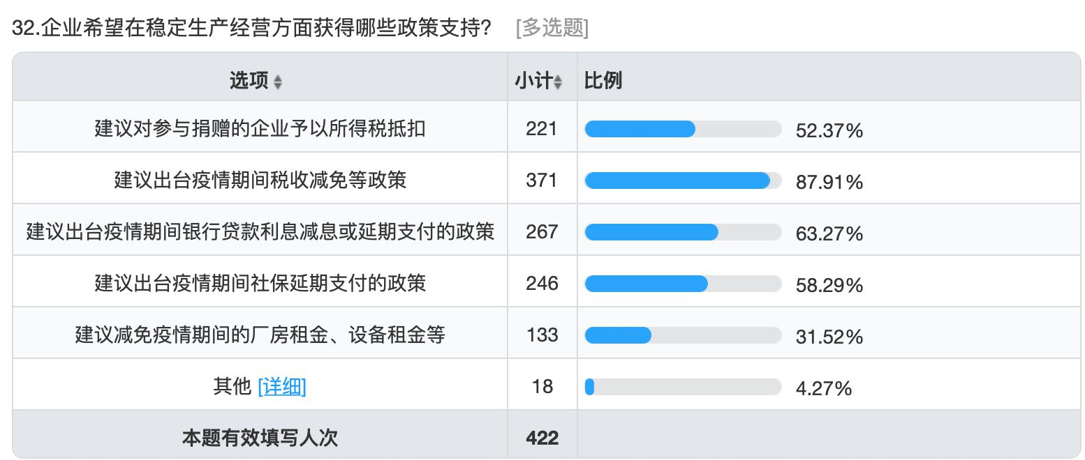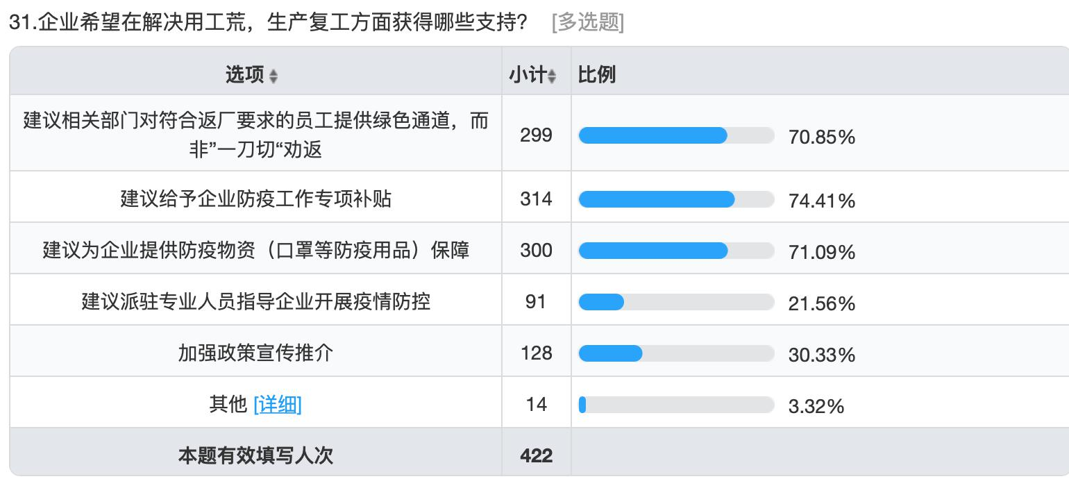 備注:有企業(yè)呼吁“各種稅費(fèi)和利息應(yīng)該是減免而不是延期““盡快恢復(fù)物流”等。