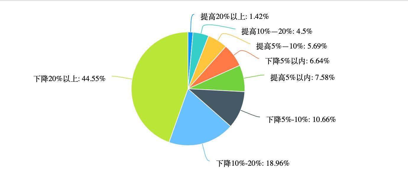 422 份問(wèn)卷中,有 44.55%的企業(yè)認(rèn)為產(chǎn)能運(yùn)用較去年下降20% 以上,有 18.96%的企業(yè)認(rèn)為下降了 10%-20%,具體見(jiàn)下圖 8。