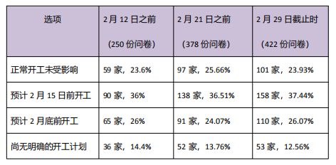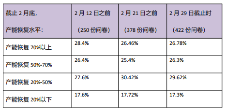 5. 企業(yè)預(yù)計(jì) 2 月底前的產(chǎn)能恢復(fù)情況: