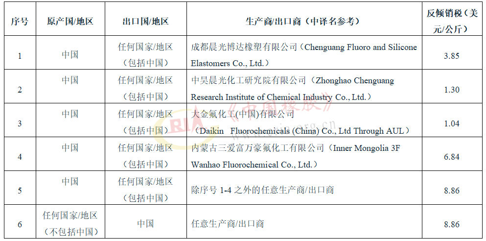 印度對華氟橡膠日落復(fù)審終裁征稅表