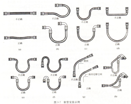 圖9-7(b)軟管的最小彎曲半徑必須大于軟管允許的最小半徑,使之處于自然狀態(tài),以避免降低軟管的使用壽命。