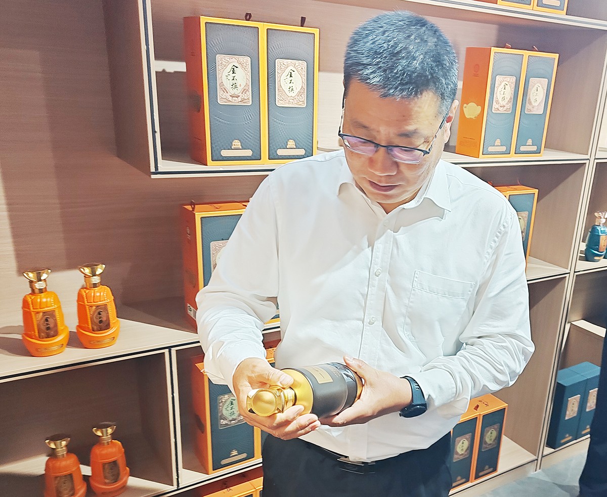 湯涌主席一行查看了金不換文化展示區(qū)、藏酒區(qū)、銷售展廳、明清窖池群和亳酒城市會(huì)客廳。金不換白酒集團(tuán)黨委書記、總裁支濤介紹了近階段企業(yè)生產(chǎn)、經(jīng)營情況和未來發(fā)展規(guī)劃。